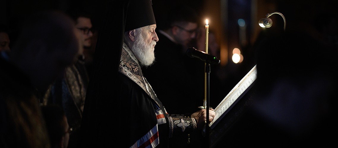 23 февраля 2026 года, в первый день Святой Четыредесятницы, в Покровском академическом храме МДА прошли великопостные богослужения. Чтение канона преподобного Андрея Критского совершил митрополит Евгений.