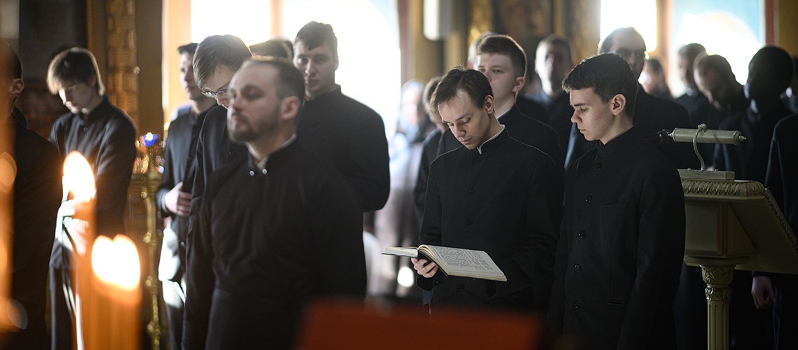 22 февраля 2026 года, накануне понедельника первой седмицы Великого поста, в Покровском храме МДА была совершена вечерня с чином прощения. Возглавил богослужение духовник Академии архимандрит Иларион (Форкавец).
