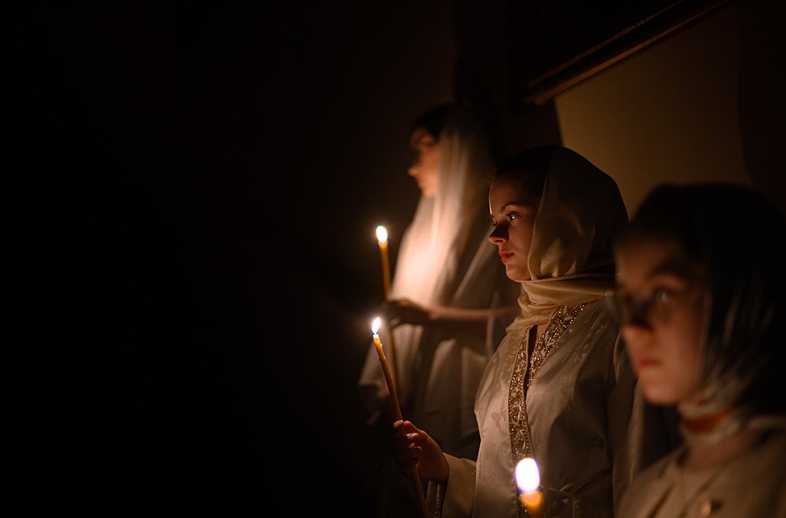 Христиане стоят в храме, как апостолы, которые в предрассветной тьме бежали ко гробу, — испуганные, недоумевающие, но уже притягиваемые невидимой силой. Сегодня мы спешим под своды храма не по привычке, а потому, что сердце не может иначе. Мы хотим своими глазами увидеть: гроб пуст. Смерть не смогла удержать Того, Кто Сам есть Жизнь. И в Евхаристии, в этом Таинстве Благодарения, мы приобщаемся не к воспоминанию, а к самой победе, к самой реальности Воскресшего Христа.