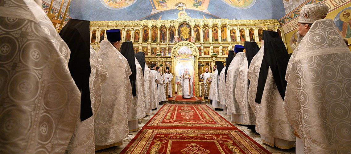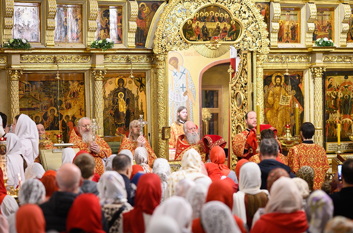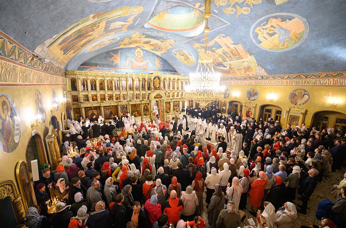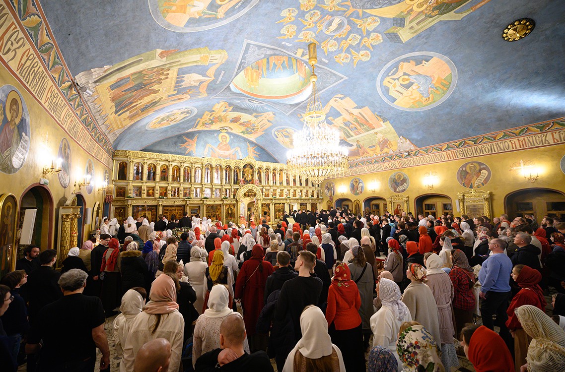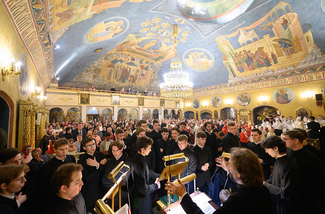 Богослужебные песнопения исполнили 1-й академический хор под управлением Е.В. Боровинского и 3-й смешанный хор под управлением К.А. Букуровой.