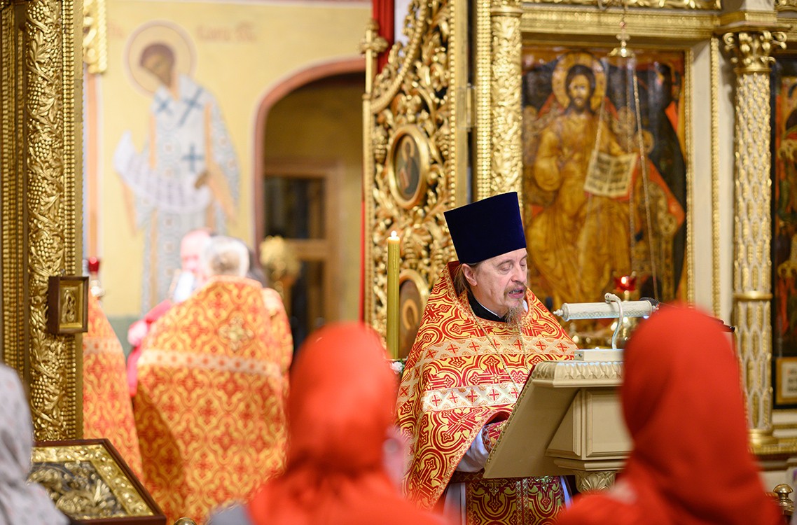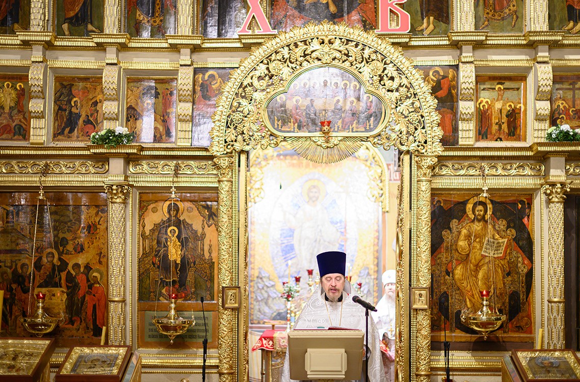 Во время причащения духовенства в алтаре протоиерей Сергий Забелич огласил Пасхальное послание Святейшего Патриарха Кирилла архипастырям, пастырям, диаконам, монашествующим и всем верным чадам Русской Православной Церкви.