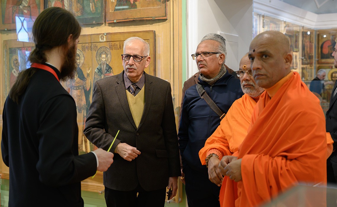 После официальной части гости посетили музей Московской духовной академии, где с большим интересом ознакомилась с экспозицией, включающей древние иконы, церковную утварь, рукописи и другие церковной древности. Индийские духовные лидеры отметили высокий уровень сохранности исторического наследия и уникальность представленных экспонатов.