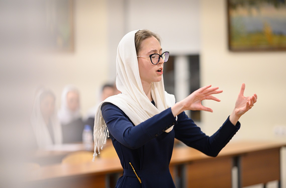 В ходе выступления учащиеся продемонстрировали навыки дирижирования и работы с хором. В состав комиссии под председательством декана факультета игумена Лазаря (Гнатива) вошли заместитель декана Е.В. Боровинский и преподаватель по дирижированию, камерно-хоровому исполнительству и практике работы с хором С.П. Боровинская.