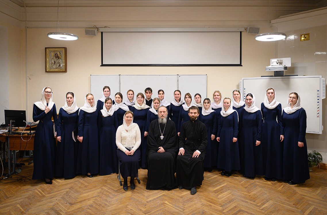 В 310-й аудитории академического корпуса прошел концерт — зачет по дисциплинам «камерно-хоровое исполнительство» и «практика работы с хором», на котором результаты полугодовой работы представили студенты 2 и 3 курсов факультета церковно-певческого искусства Московской духовной академии.