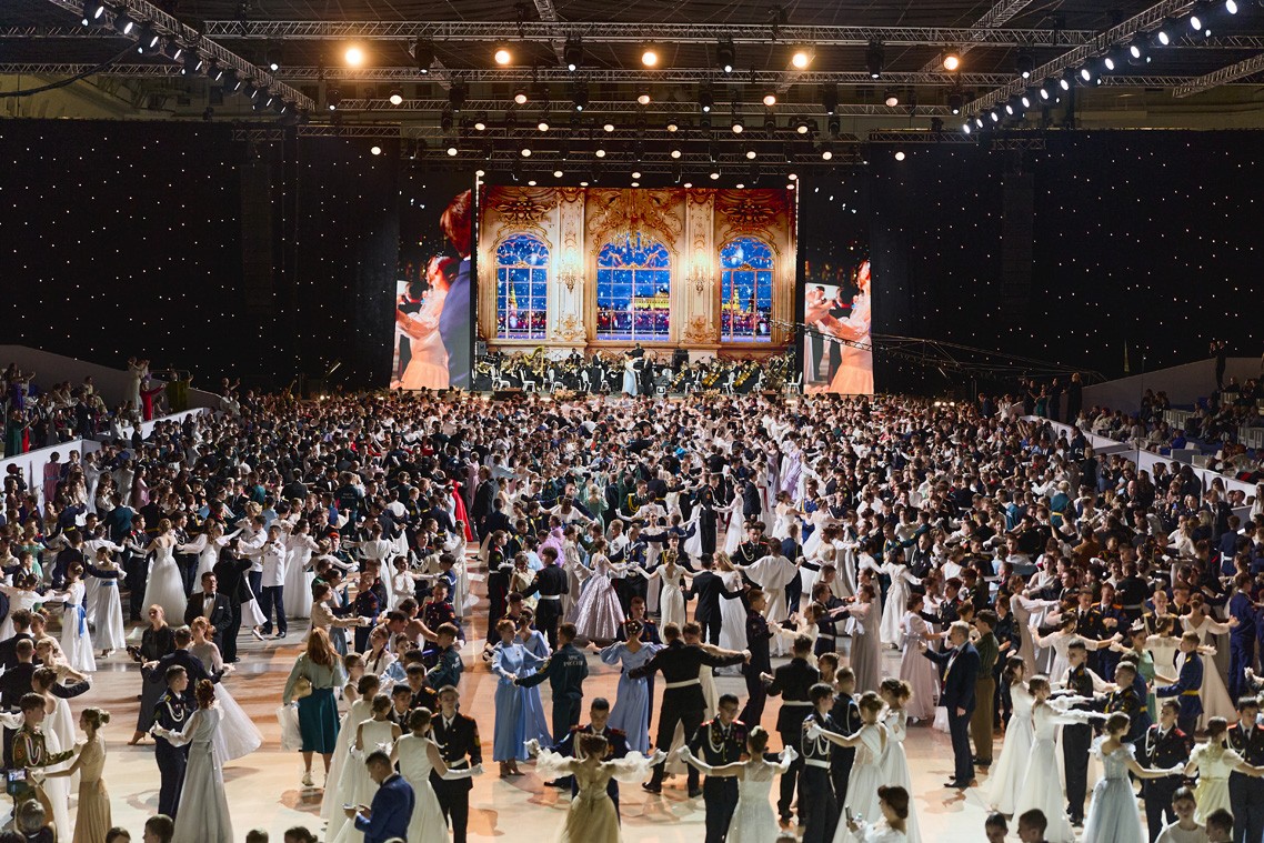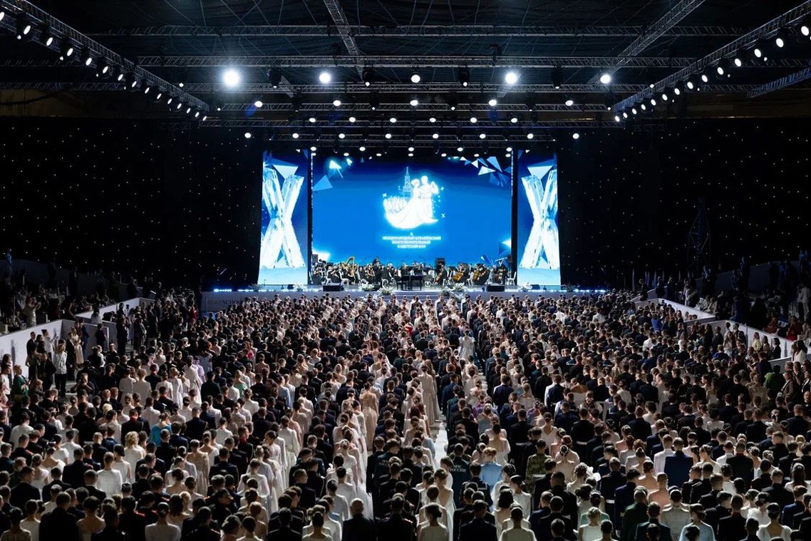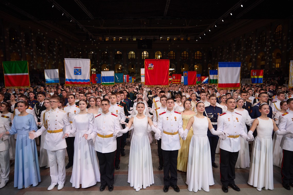 В Кремлевском кадетском бале приняли участие 3400 юношей и девушек от 14 до 23 лет из всех субъектов Российской Федерации — у многих из них близкие и родные являются участниками СВО, а также ребята из 63 стран.