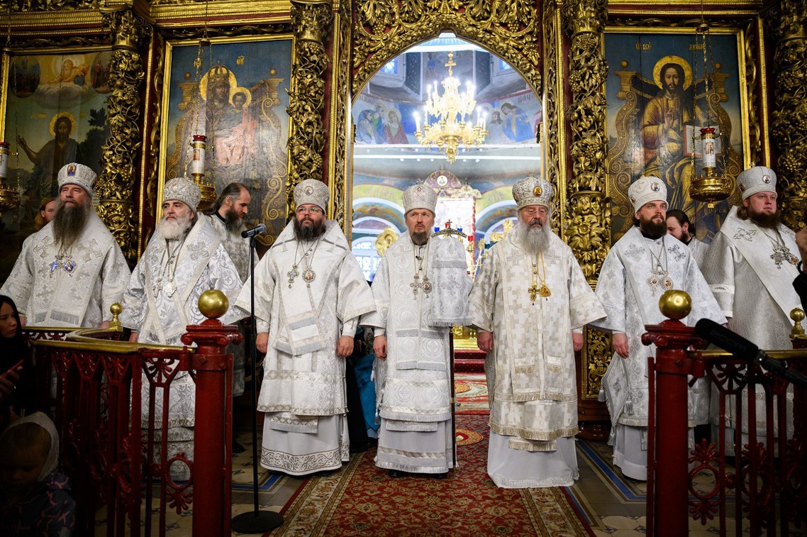 Богослужение совершили митрополит Минский и Заславский Вениамин, Патриарший экзарх всея Беларуси, митрополит Казанский и Татарстанский Кирилл, митрополит Псковский и Порховский Матфей, митрополит Звенигородский Арсений, викарий Святейшего Патриарха Московского и всея Руси, епископ Тихвинский и Лодейнопольский Мстислав, ректор Санкт-Петербургской духовной академии епископ Петергофский Силуан, ректор Московской духовной академии епископ Сергиево-Посадский и Дмитровский Кирилл, ректор Православного Свято-Тихоновского гуманитарного университета епископ Егорьевский Мефодий, викарий Святейшего Патриарха Московского и всея Руси.