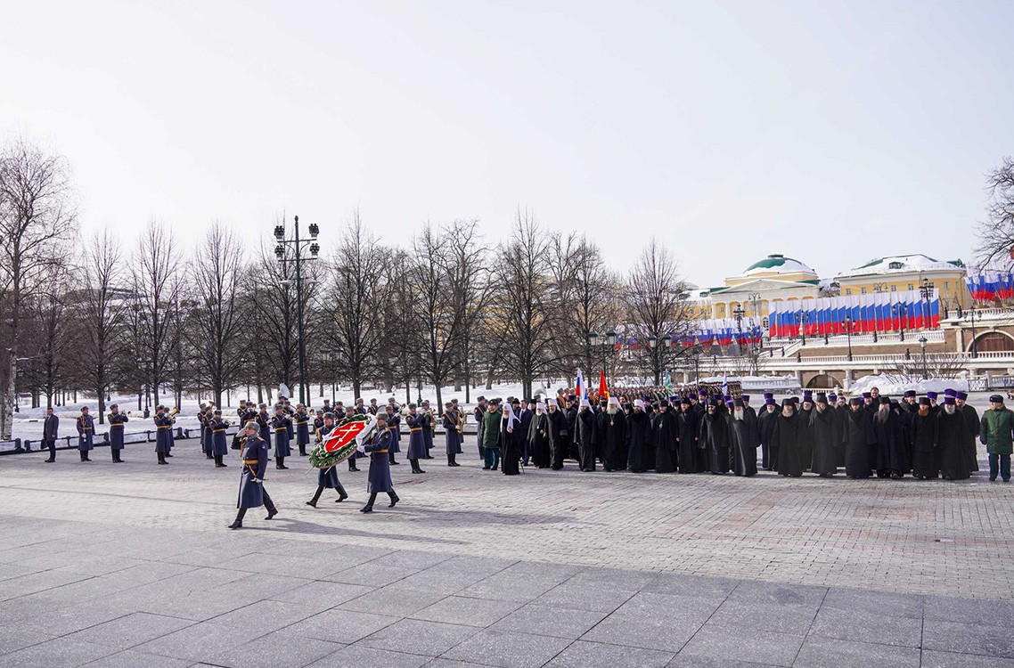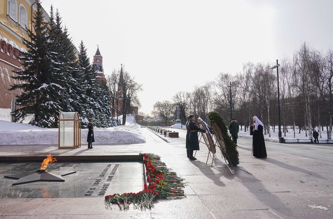 23 февраля 2026 года, в День защитника Отечества, Святейший Патриарх Московский и всея Руси Кирилл возложил венок к могиле Неизвестного солдата в Александровском саду у стен Московского Кремля.