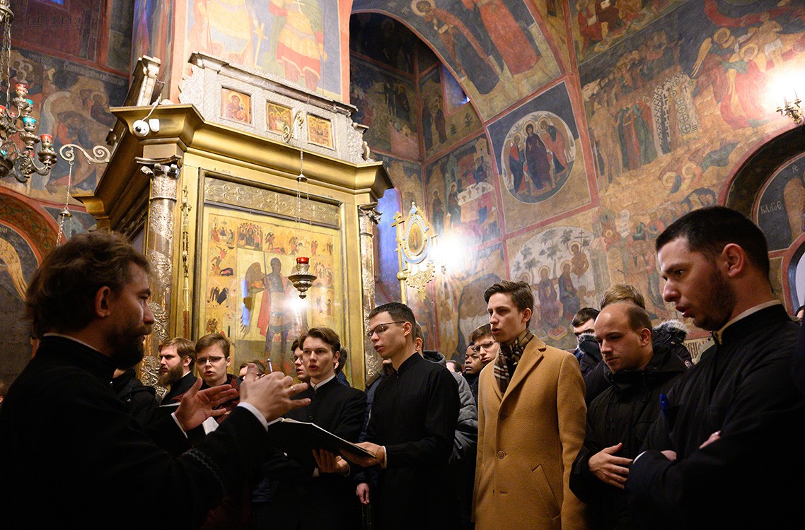 Праздничные песнопения исполнил 1-й академический хор под управлением Е.В. Боровинского.