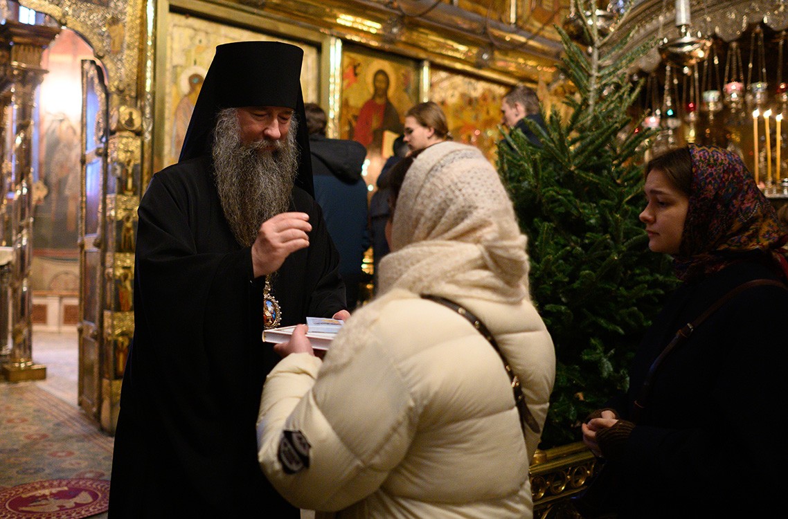 После славления ректор Московской духовной академии и наместник Троицкой обители епископ Сергиево-Посадский и Дмитровский Кирилл обратился к собравшимся с праздничным словом.