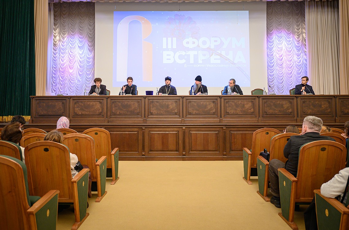 На пленарном заседании участники форума заслушали видеообращение председателя Синодального отдела религиозного образования и катехизации Русской Православной Церкви митрополита Екатеринбургского и Верхотурского Евгения. В своем слове владыка напомнил о существовании до революции в России студенческого христианского движения и поддержал стремление участников форума добиться возрождения этого движения под эгидой Русской Православной Церкви.
