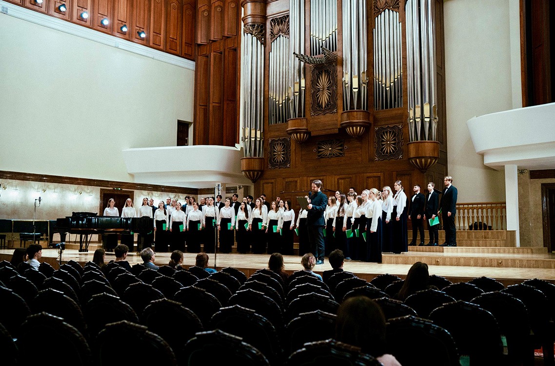 В конкурсную программу студентки IV курса факультета церковно-певческого искусства Елизаветы Кирилловой (класс преподавателя К.А. Алексеевой) вошли два хоровых произведения: П.Г. Чеснокова «О, пресладкий и всещедрый Иисусе…» из цикла «Во дни брани», ор. 45 № 2, и Г.В. Свиридова «Поет зима, аукает…», № 2 из «Поэмы памяти Сергея Есенина».