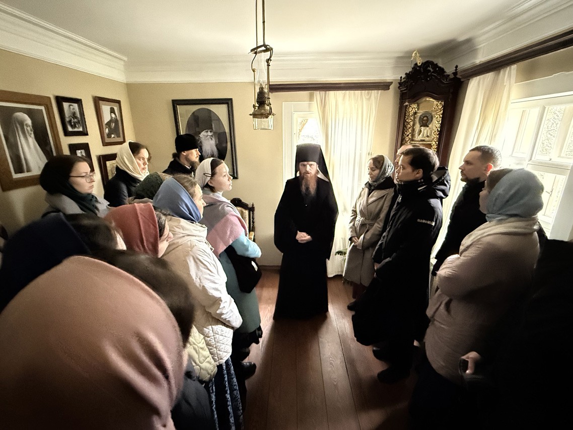 После поминовения усопших насельников студенты посетили келью преподобного Амвросия Оптинского, экскурсию по которой провел насельник монастыря, выпускник МДА инок Агафон (Игонин).