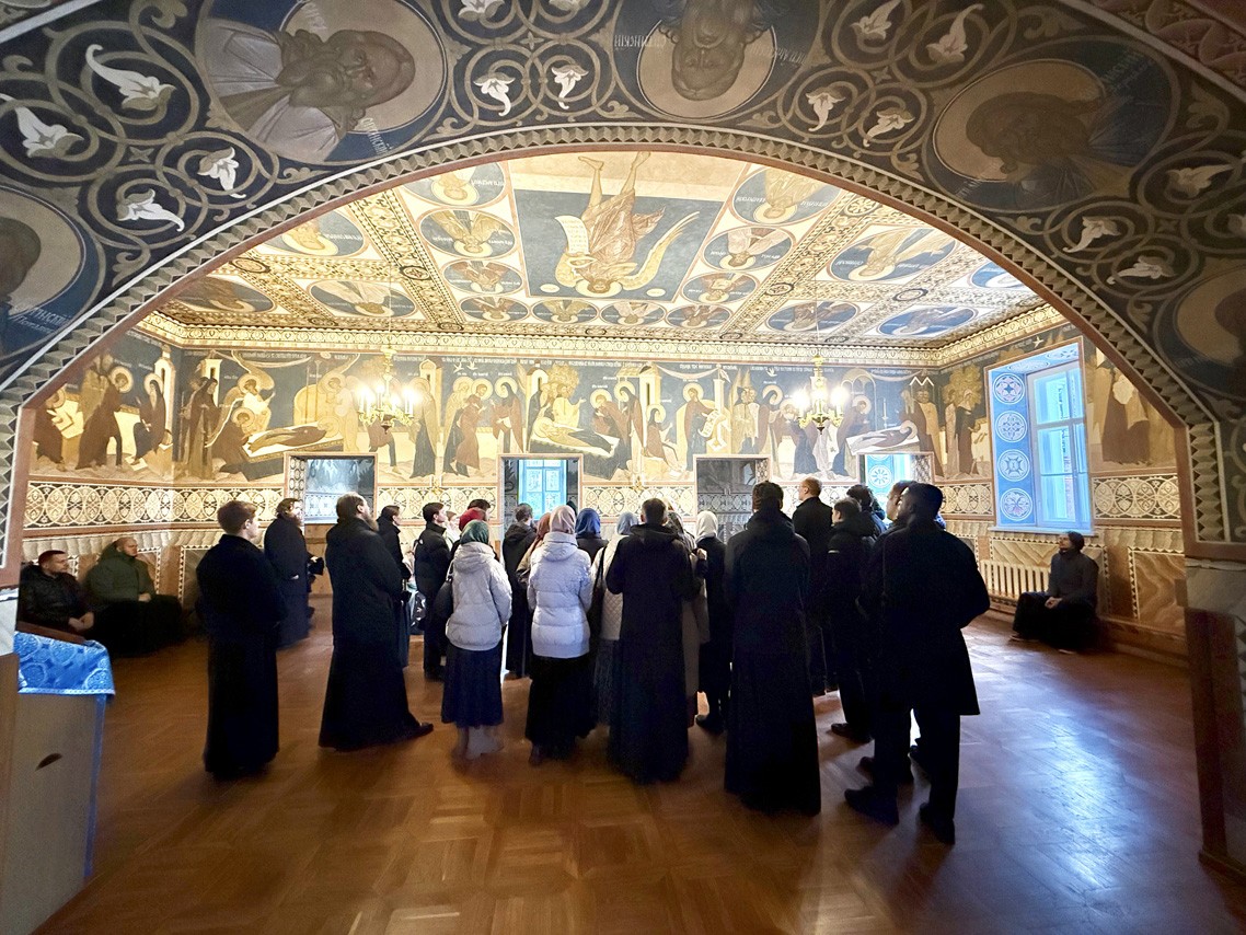 По окончании богослужений для паломников МДА была проведена увлекательная экскурсия по храмам и святыням монастыря, вызвавшая неподдельный интерес у студентов. В ходе экскурсии учащиеся Академии посетили Введенский собор, Казанский, Владимирский, Преображенский храмы пустыни, а также некрополь монастыря.