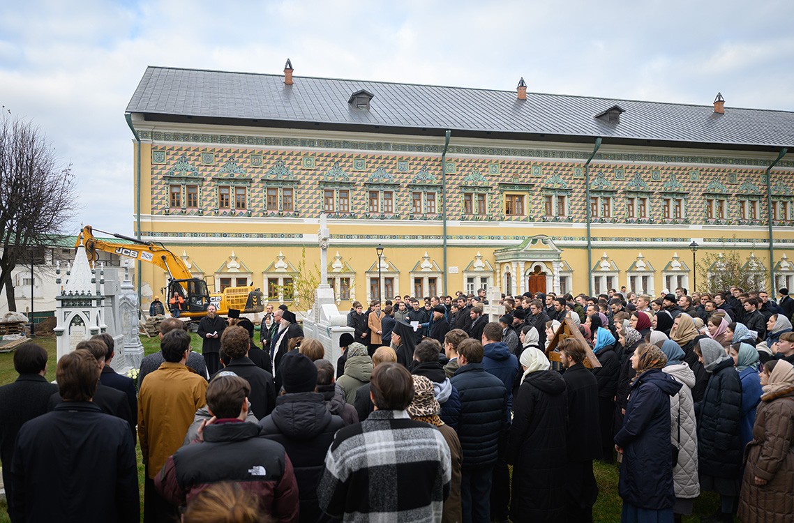 Более 10 лет назад, когда администрация Академии была озабочена воссозданием академического исторического некрополя, мы поставили себе цель восстановить могилы и исторические памятники тех, кто здесь погребен. И многим эта цель казалась тогда недостижимой. Однако это стало возможным в результате глобальных комплексных археологических исследований, проведенных в 2014 году Институтом археологии Российской академии наук. Тогда мы праздновали 700-летие преподобного Сергия. Примечательно, что следующий этап активной работы по воссозданию уже самих памятников некрополя пришелся на год 600-летия со дня обретения его честных мощей. Произошло это в 2022 году; и событие это на нашей с вами памяти. Вот так с памятью преподобного Сергия связано воссоздание этого некрополя.