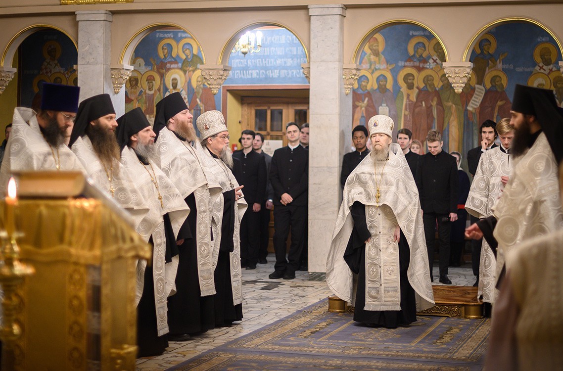 Накануне праздничного дня, вечером 17 января, преподаватели и студенты молились за воскресным всенощным бдением. Богослужение возглавил архимандрит Платон.
