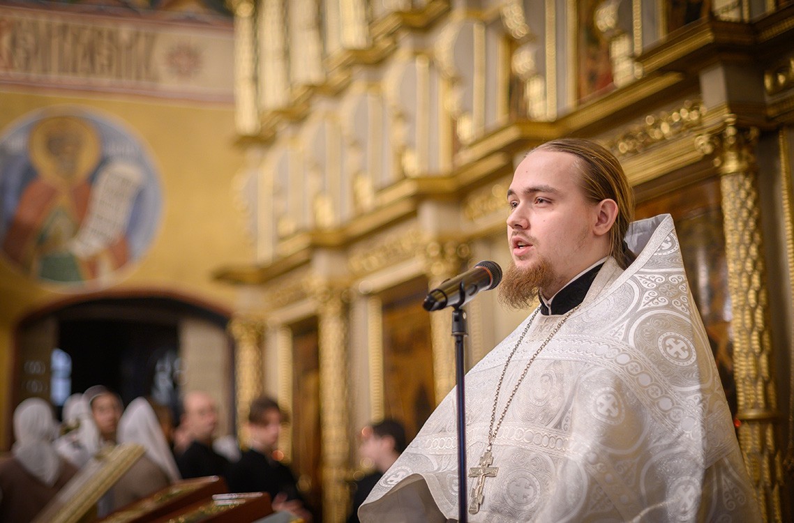 После запричастного стиха проповедь произнес студент 4 курса бакалавриата священник Тихон Белокрылов.