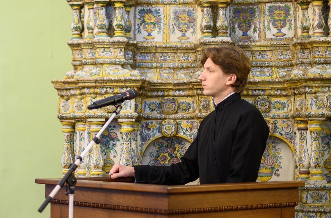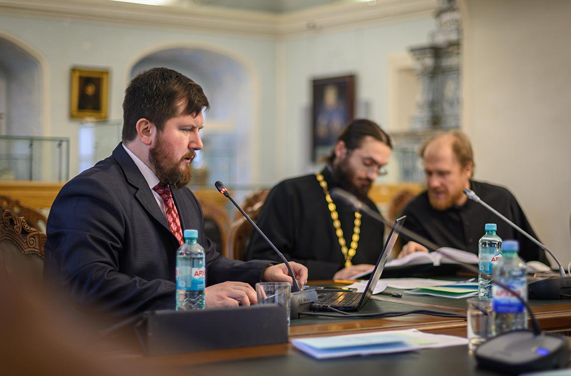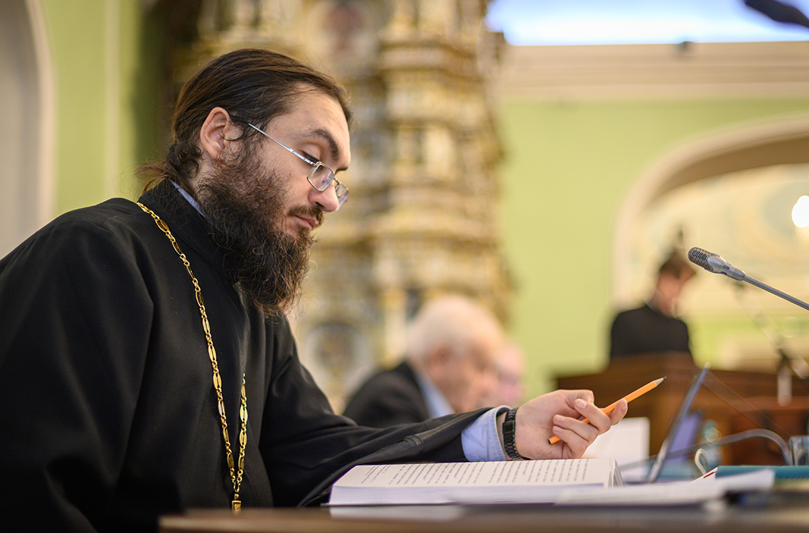Первый диссертант, диакон Иоанн Змиев, представил кандидатскую диссертацию на тему «Концепция остатка Израиля в пророческих книгах Ветхого Завета».