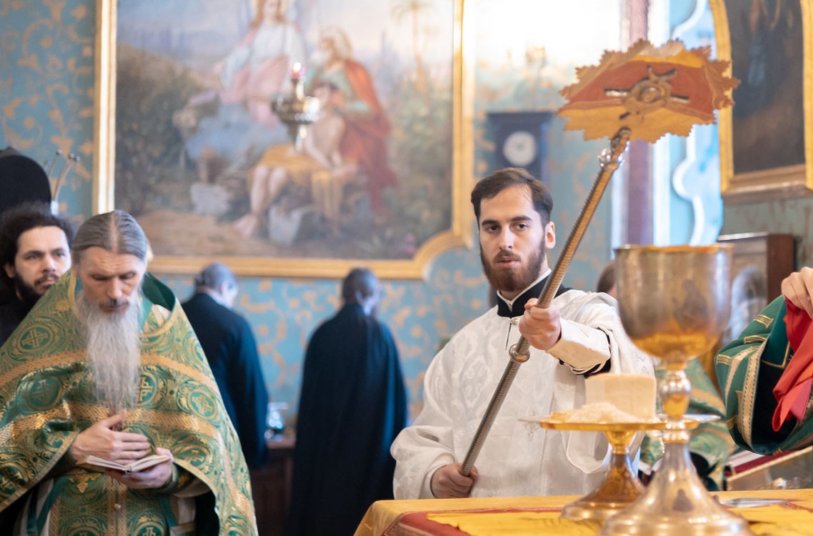 На богослужении владыка Кирилл рукоположил в сан диакона студента 4 курса бакалавриата МДА Олега Бушуева.