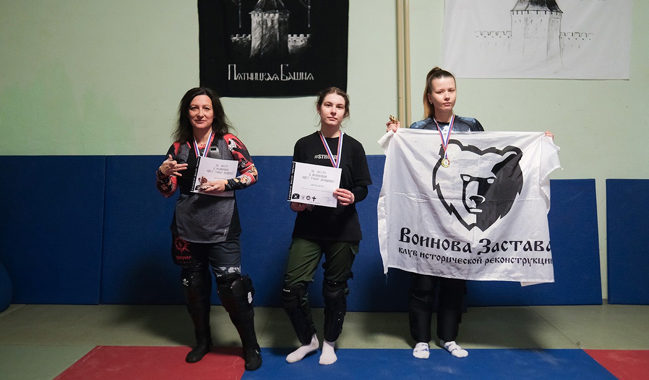 Бойцы клуба-организатора «Пятницкая башня» проявили себя достойно во всех номинациях, показав хорошую подготовку и волю к победе. Особенно отличилась студентка иконописного факультета Полина Ирисова, занявшая второе место в номинации «Щит — топор».