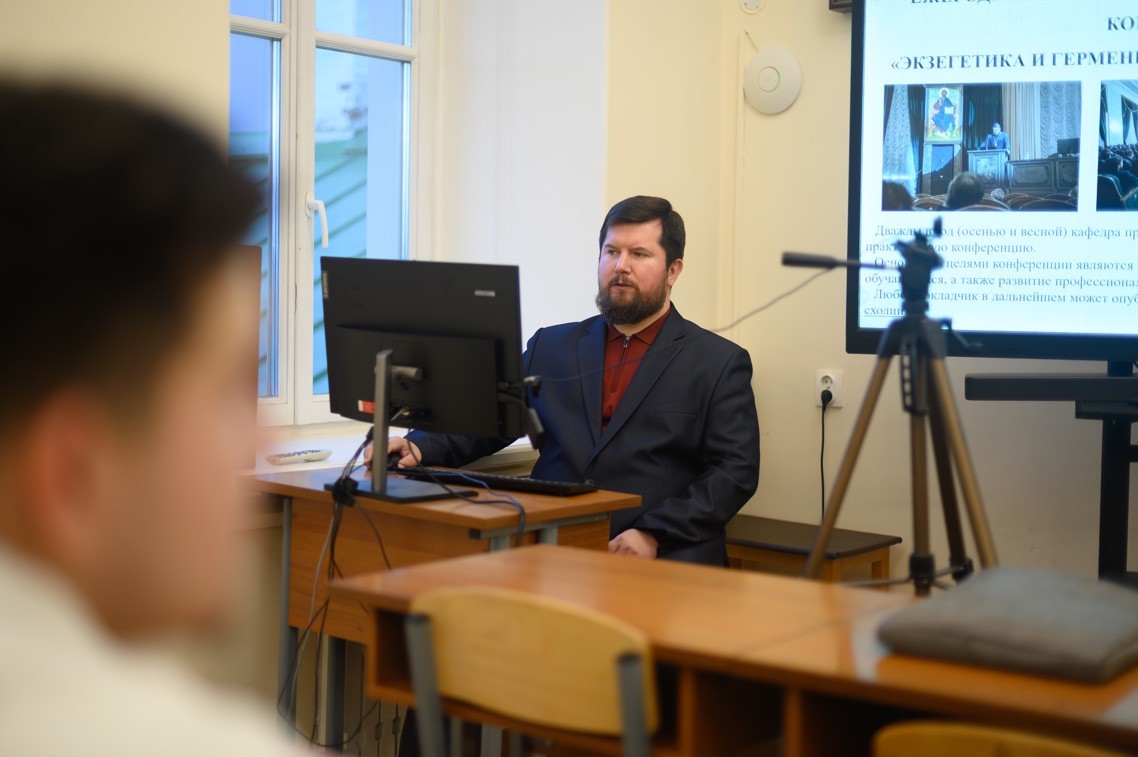 Открыл мероприятие проректор по учебной работе священник Павел Лизгунов. Передав всем собравшимся приветственный адрес ректора МДА епископа Сергиево-Посадского и Дмитровского Кирилла, он рассказал о целях и задачах, которые стоят перед Академией, а также познакомил гостей со структурой духовной школы. Особое внимание в своем сообщении проректор обратил на содержание учебной программы богословско-пастырского факультета.