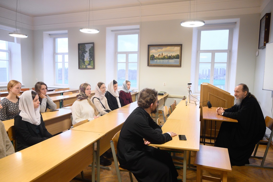 Будущие абитуриенты иконописного факультета встретились с деканом факультета архимандритом Лукой (Головковым). В ходе беседы гости узнали о правилах приема на факультет, необходимых навыках, которыми должен обладать абитуриент, а также о внутреннем распорядке жизни студента иконописного факультета.