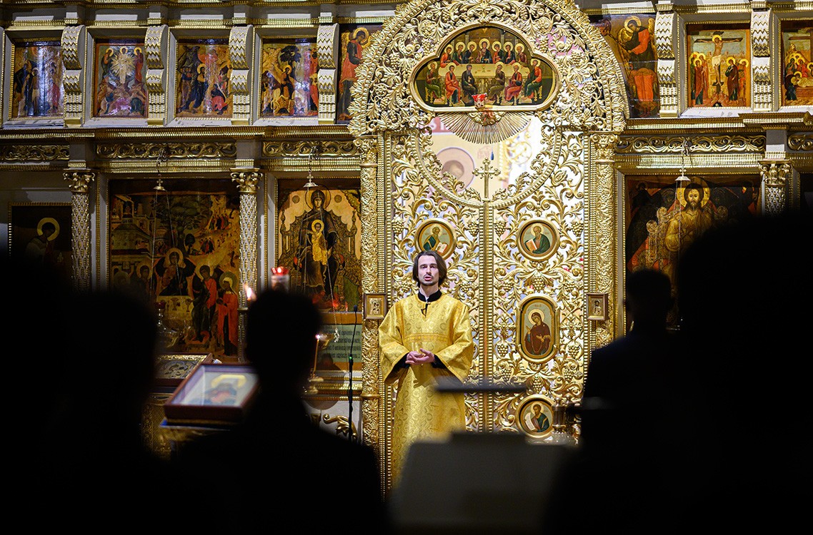 Проповедь перед чтением кафизмы произнес студент 4 курса бакалавриата Александр Карасев.